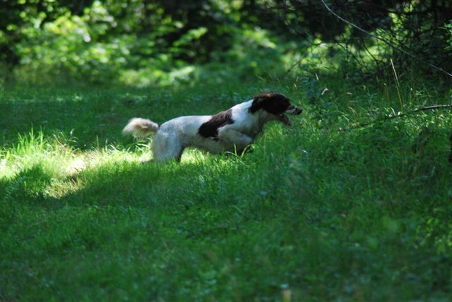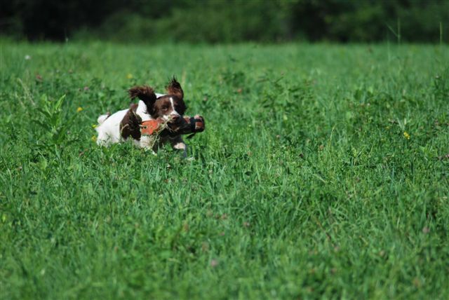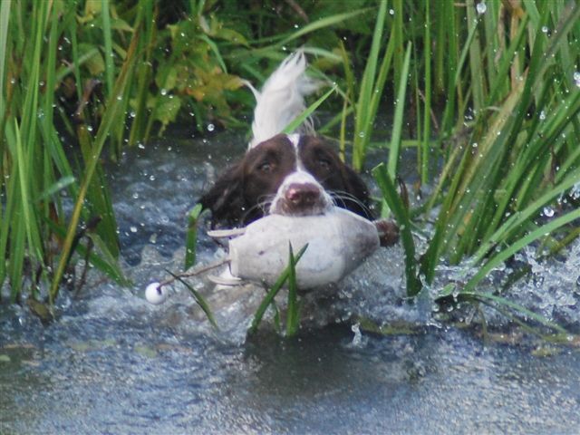 All of my Spaniels are trained to the level of finished gun dogs. That is, they are steady to wing and shot, retrieve kindly to hand, hunt all forms of cover and handle to blind retrieves on land and water. A dog has to meet my expectations in the hunting field before I breed them.
